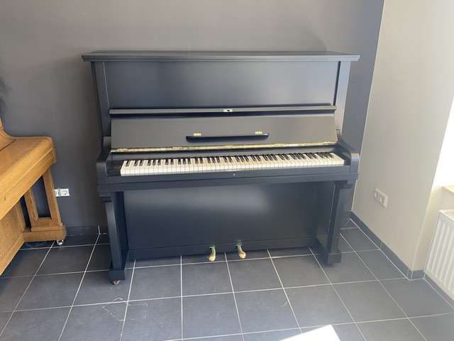 Leider sind die meisten Instrumente nicht mehr lohnend zu erhalten, aber einige Instrumente gibt es schon. Hier gerade ein Bogs & Voigt Klavier, neu lackiert, neu überarbeitet, schön, klangstark, nicht für Etage geeignet.