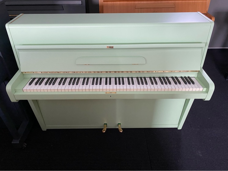 Wir lackieren ja viele Klaviere farbig, diesen Farbton hatte sich ein Kunde für sein Instrument ausgesucht, wir fanden ihn auch sehr schick und haben direkt mal ein Uebel Lechleiter Klavier für uns lackiert. Das deutsche Klavier ist, wie fast immer bei uns, mit der guten deutschen Renner Mechanik ausgestattet.